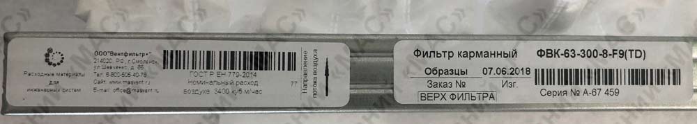 КЛАСС ОЧИСТКИ: F9 / EU9 (ГОСТ Р ЕН 779:2014 / ГОСТ Р 51251-99 / EN 779:2012)